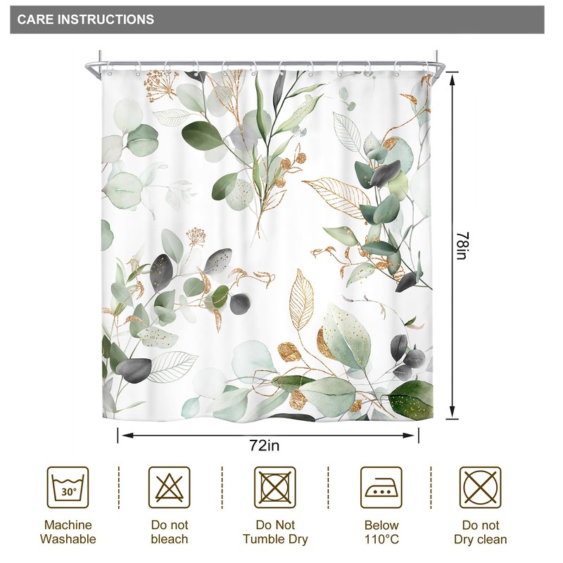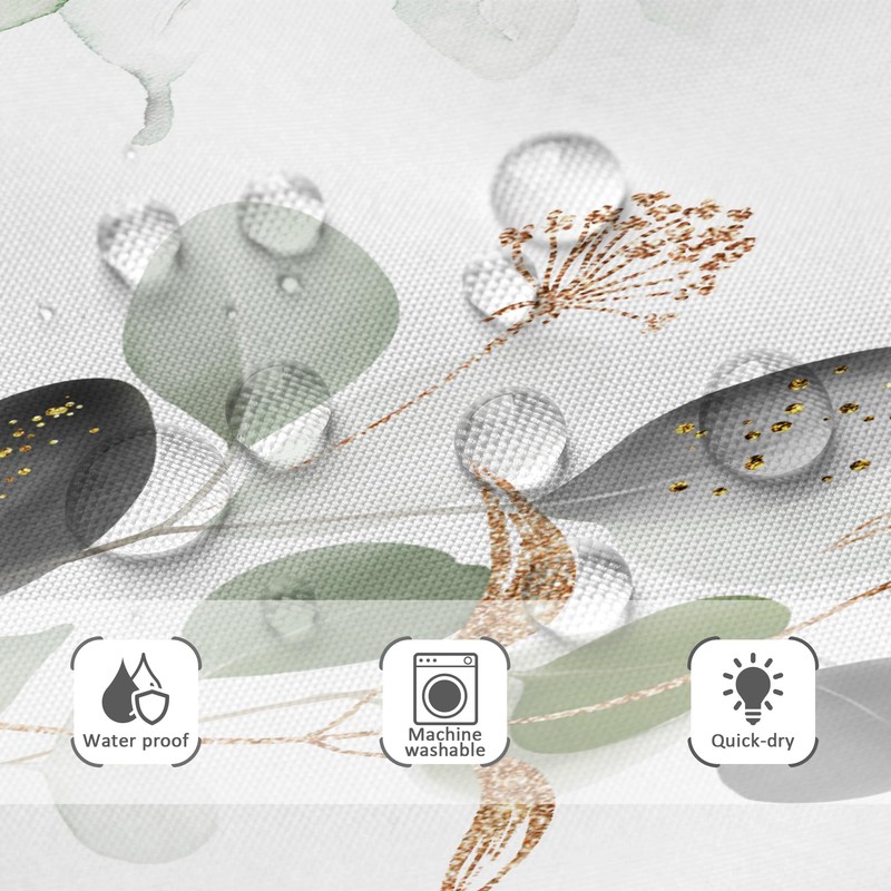 - 【Unique Design】: Enhance your bathroom aesthetics with our sage green gold botanical eucalyptus leaf shower curtain, featuring a refreshing and elegant pattern of green eucalyptus leaves accented with gold. Perfect for those seeking botanical shower curtains that make a statement.