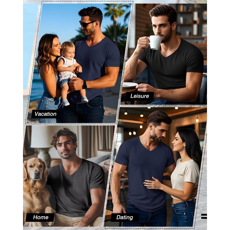 - V Neck T Shirts: the v neck design adds a stylish touch and allows it to be worn under shirts without showing, ideal for formal or casual looks; This stylish design makes it easy to match, suitable for daily wear or layering beneath a dress shirt