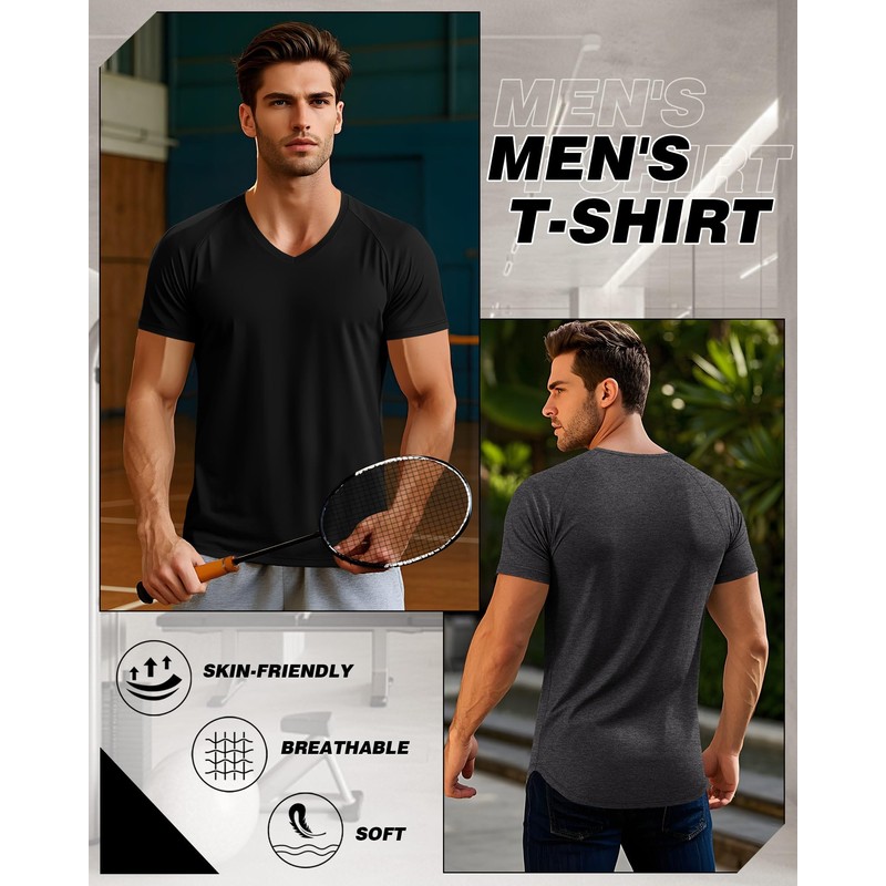 - Soft Fabric: these men's v neck t-shirts are made of 35% cotton, 60% polyester and 5% spandex; The fabric is soft, stretchy and breathable for a comfortable and snug fit, making them versatile for both casual wear or layering under a jacket or sweater
