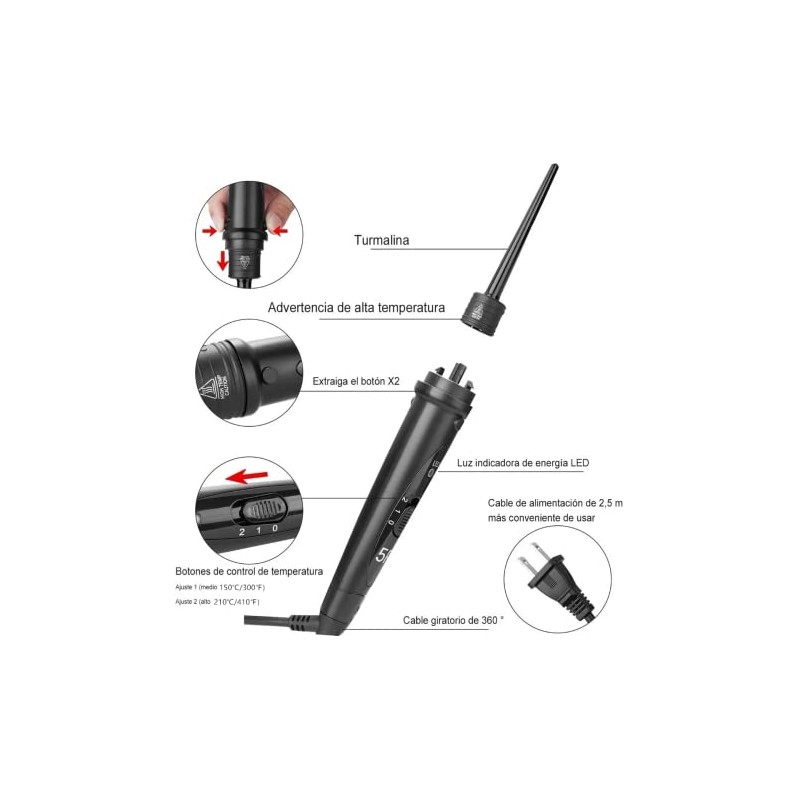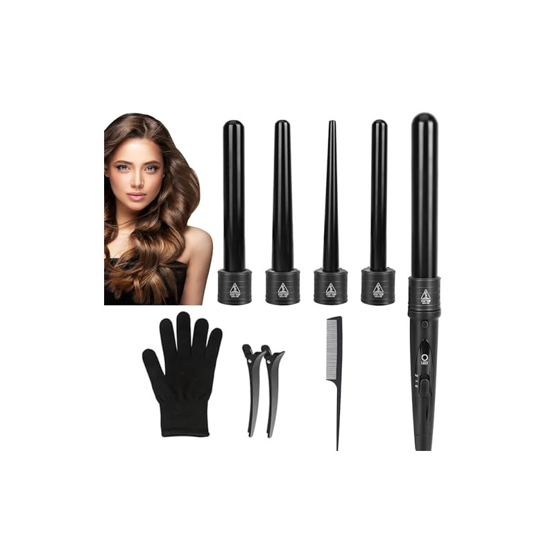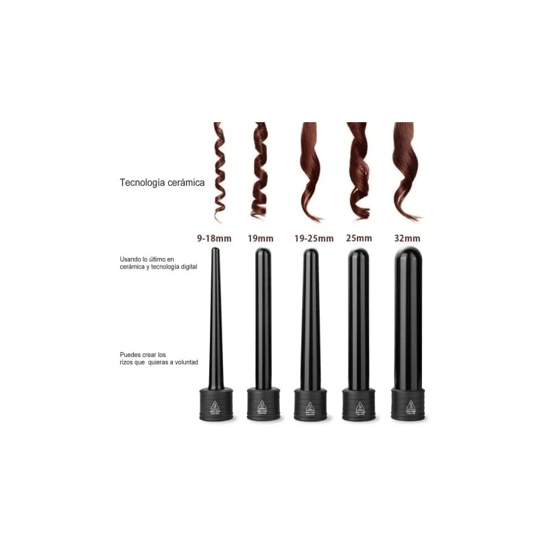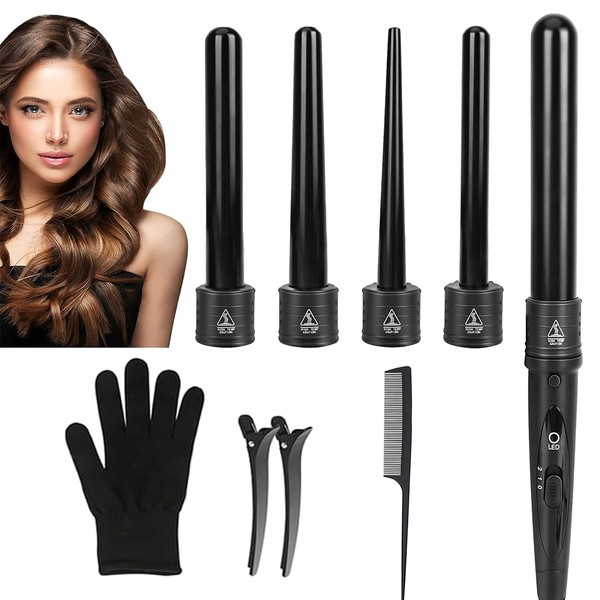 Rizador de Cabello, 5 en 1 Ferro para el Cabello con Temperatura Ajustable, Rizador de Pelo Cermica con Guantes, Calienta Rpidamente, Juego de Pinzas