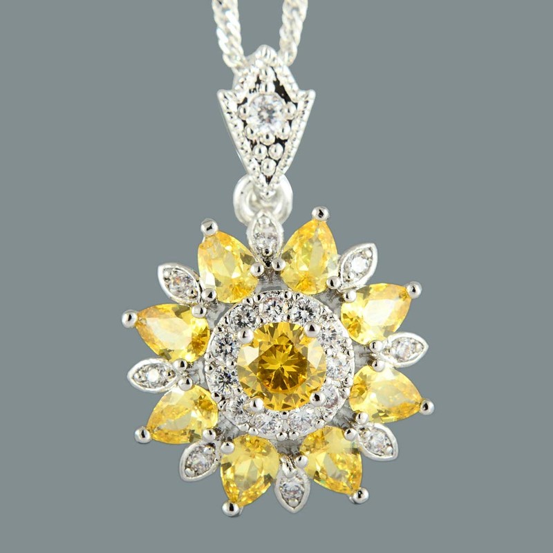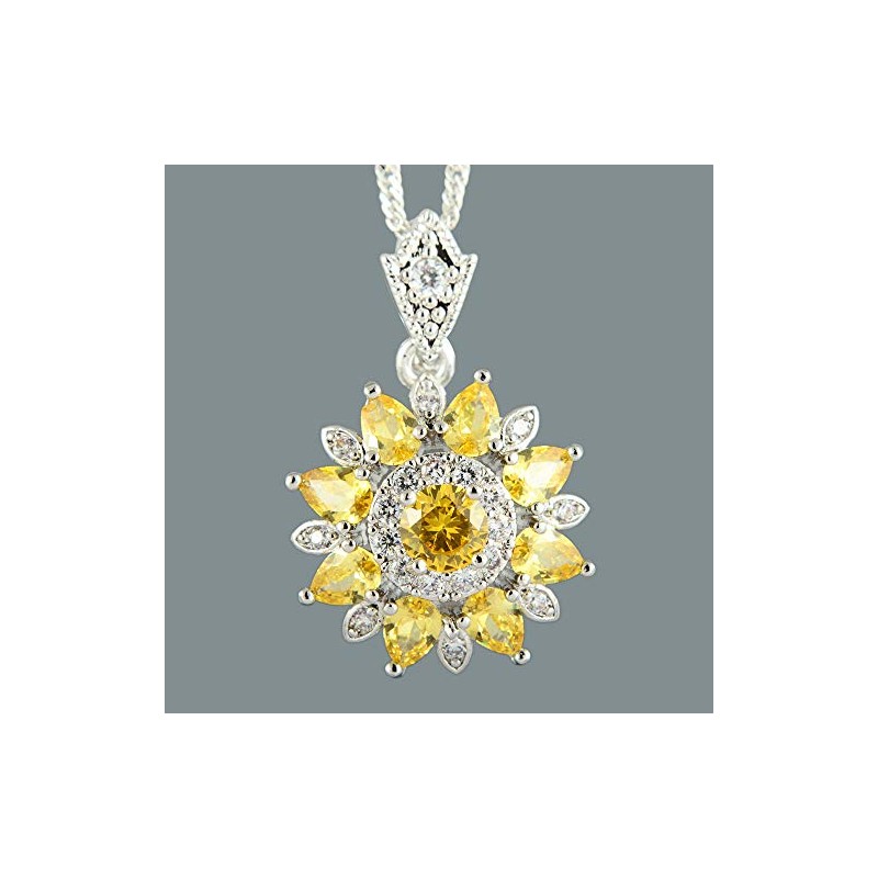RIZILIA Blossom Pendant with 46cm(18") Chain & Round Cut Gemstones CZ [Yellow Citrine] in 18K White Gold Plated, Simple Modern Elegance