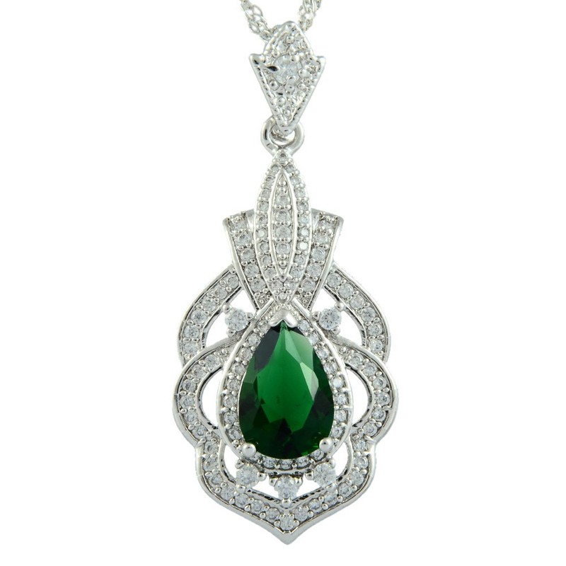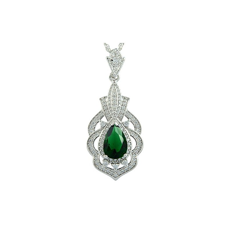 RIZILIA Pendant with 45cm(18") Chain & Pear Cut Gemstones CZ [Green Emerald] in 18K White Gold Plated, Simple Modern Elegance