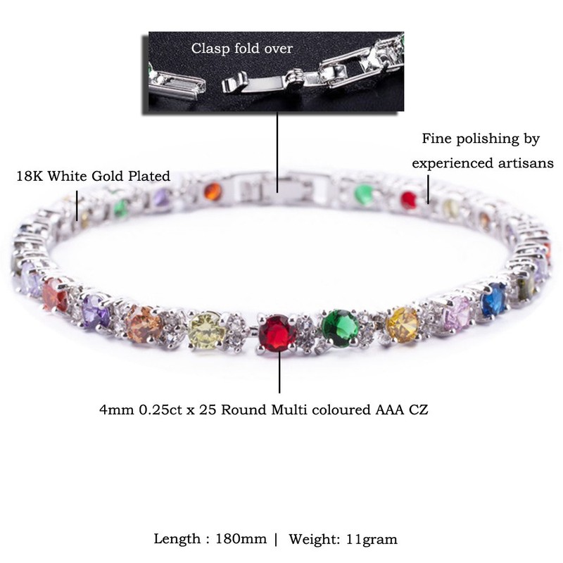 RIZILIA Round Multi-Color CZ and White Cubic Zirconia 18K White gold Plated Tennis Bracelet, 7"