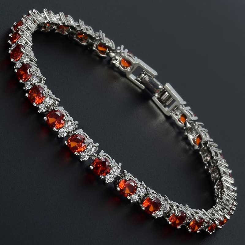 • [Metal and Gemstones]: Environmentally friendly brass (NICKEL FREE) with White Gold Plated. Simulated Red Garnet (January Birthstone) are used. Main gemstone size is 4mmx4mmx25