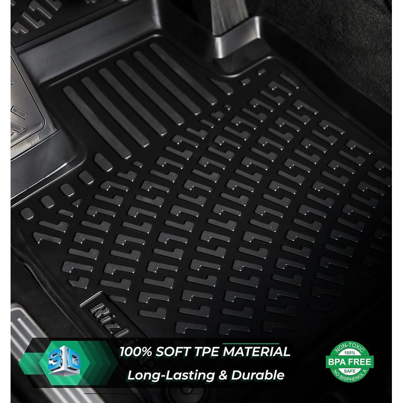 - [ TPE MATERIAL & DURABLE ]: RizLiner car mats are made of 100% TPE material. Rubber floor covers are eco-friendly, completely non-toxic, odorless and durable. The vehicle mat are resistant to -58 and 176 Fahrenheit.