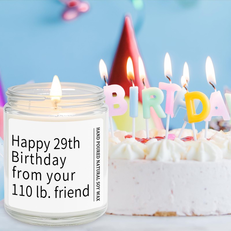 - 【Best Friend Birthday Gifts for Women】: The best friend birthday candle is printed with a fun saying "Happy 29th Birthday from Your 110LB Friend" and can be used as birthday gifts for friends. Light it up and fill the room with laughter and a wonderful atmosphere. Add a touch of surprise to your dear friend's special day with humor and warmth, making their birthday truly unforgettable!