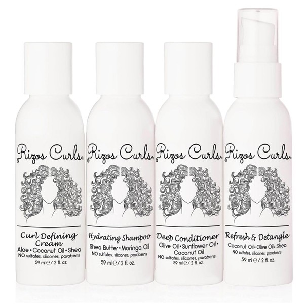 Rizos Curls 4-Step Travel Kit for Curly Hair: Curl Defining Cream, Shampoo, Conditioner, Refresh & Detangle (2 fl oz each)