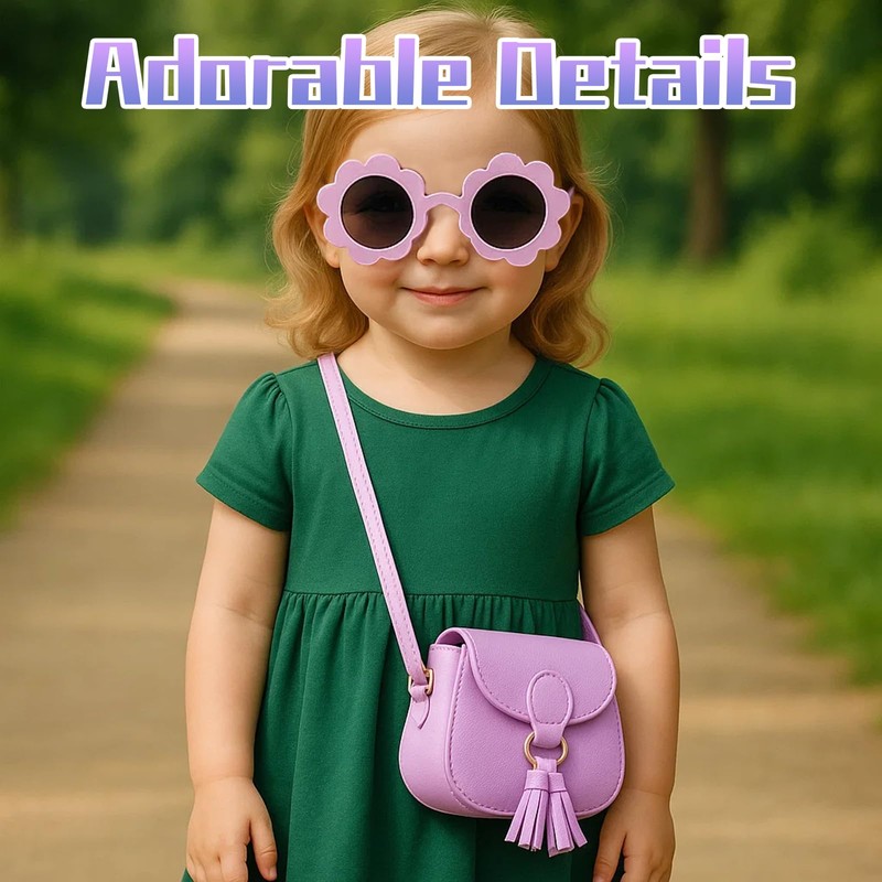- UV Protection: Sunglasses provide essential protection for outdoor activities; Kids handbag set is ideal for sunny days at the park or beach; Both items designed with young girls' safety in mind