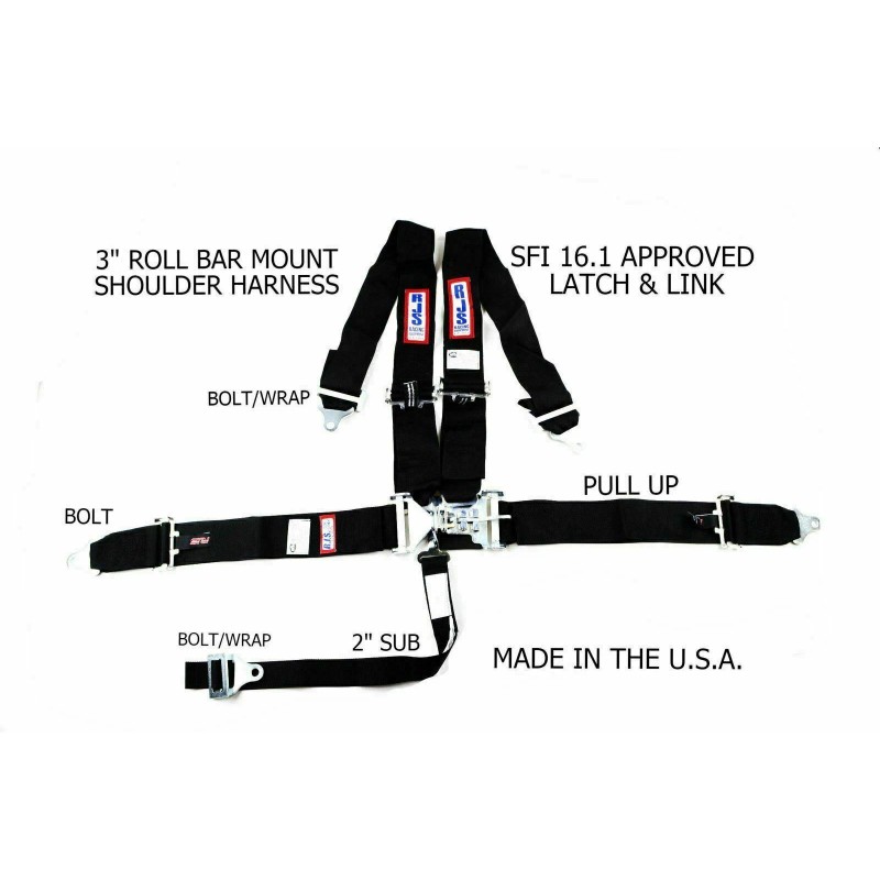 RJS RACING SFI 16.1 5PT LATCH & LINK HARNESS BELT ROLL BAR MOUNT BLACK 1156601