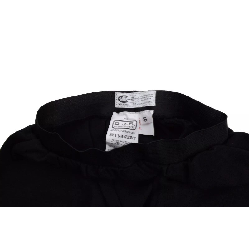 This listing is for a RJS Racing Equipment Undergarment Bottom Pants.  Size Large, Color Black.  This item is made from lightweight soft Fire-Retardant Aramid. Aramid is a Nomex but softer.  This SFI 3.3 Rated undergarment is black in color with a superior fit, comfort and mobility.  For those sanctioning bodies that require three levels of protection you can use this in conjunction with an SFI approved 3-2A/5 jacket and pants and meet that third level of protection. We recommend wearing FR undergarments with all driving suits so you can race another day in the event of a fire. This will also assist you with not have to wash your racing suit as often, keeping that fire retardant chemical within the fibers of the suit instead of washing it out every time the suit is put through a cleaning cycle.