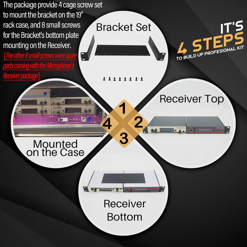 - PACKAGE INCLUDING: The package includes 1 set of bracket kit and 8 small screw for receivers fixing on bracket as well as 4 cage screw-nut for mounting the hardware on the rack case