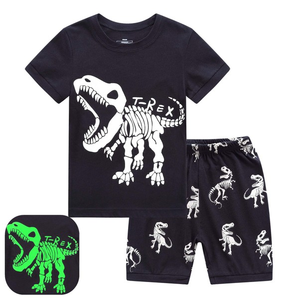 RKOIAN Little Boys Short Pajamas Sets Glow in The Dark Toddler PJS Cotton Kids Sleepwears (Black/T-Rex, 8 Tall)