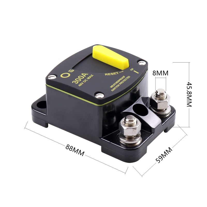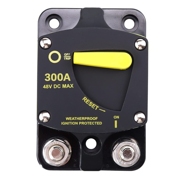 RKURCK 12V - 48V DC 300 Amp Surface Mount & Panel Mount Circuit Breakers with Yellow Manual Reset Button Waterproof 300A