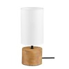 - Tischleuchte Woody mit einem Sockel aus Holz und einem Stoffschirm in der Farbe Wei?