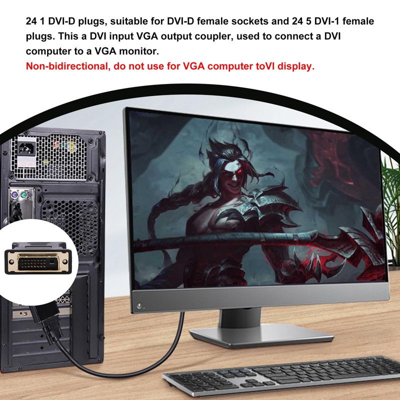 DVI in VGA out - It’s NON bi-directional, can’t support VGA computer to DVI monitor.