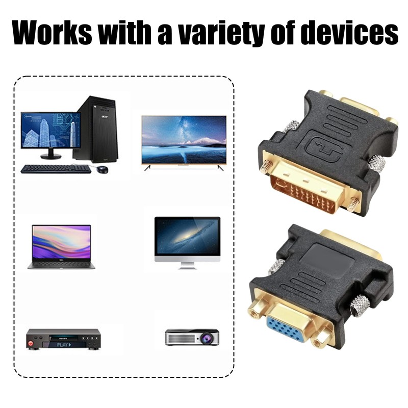 • 24+1 pin DVI male to VGA female adaptor is designed with gold plated connector resists corrosion and increases durability