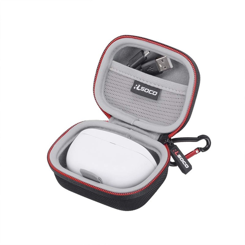 - Kompaktes Design: Die Hülle ist kompakt genug, um die Kopfhörer und Ladehülle zu halten und sie kann leicht mit einer Bandage an der Unterseite des Gehäuses herausgenommen werden.