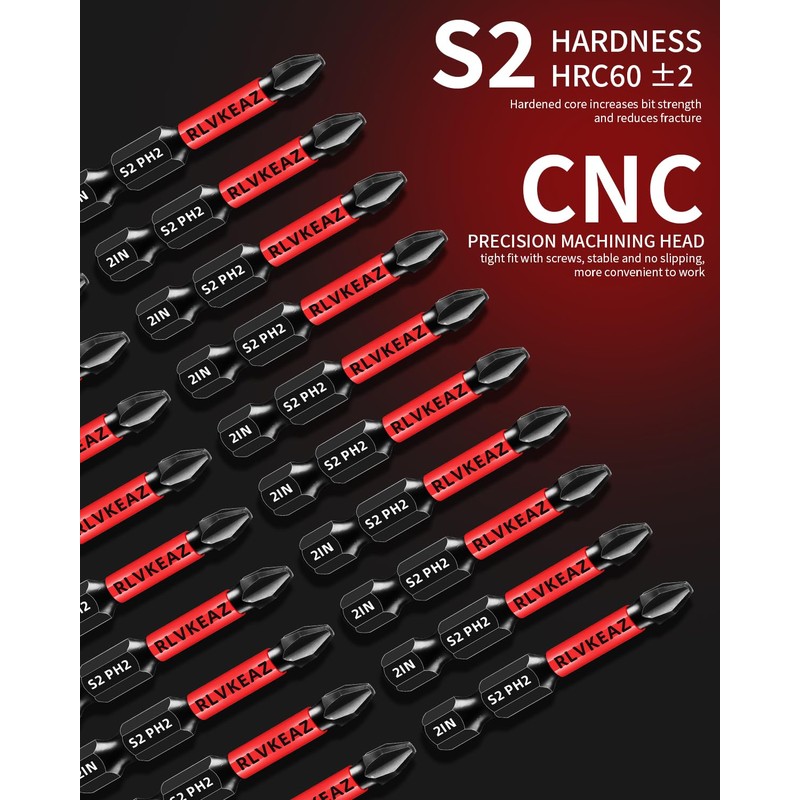 - 【S2 Steel CNC Precision】Crafted from high-grade S2 alloy, these PH2 impact bits feature CNC-machined tips for stable high-torque performance and reduced slippage