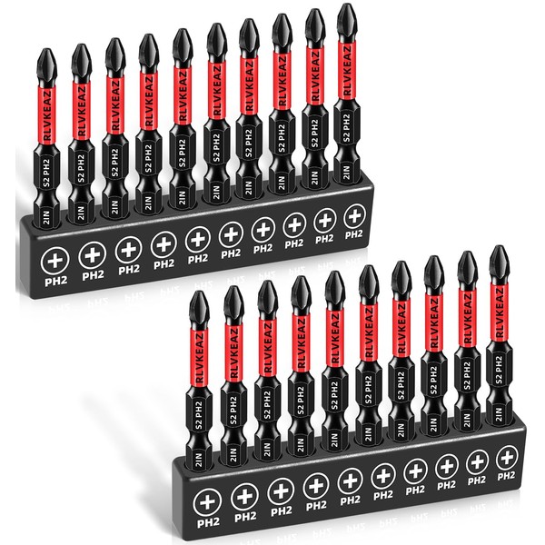 RLVKEAZ 20-PCS Phillips Bits #2 Impact, Magnetic 2'' Phillips Head Drill & Screwdriver Bits Set, Premium S2 Steel, with 1/4" Hex-Shank for Power Drill, Professional & DIY Use