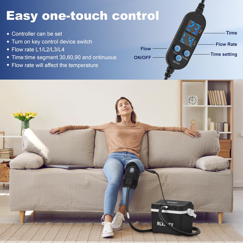 - ADJUSTABLE TIME AND FLOW: Precise Time Control (30min, 60min, 90min, and continuous mode) for safe and convenient cold treatment.Flexible Flow Rate Adjustment (L1, L2, L3, L4) to suit your needs and level of comfort.