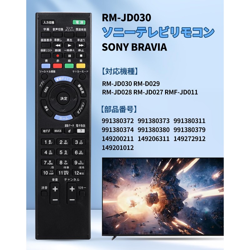 - Compatible models: Sony TV Remote Control RM-JD030 Remote Control Compatible Bravia Remote Control: RM-JD030 RM-D029 RM-JD028 RM-JD027 RMF-JD011, Product Code: 991380372 149200211 991380373 991380313131380313131313803131313803131313138038038031313131311313113113803803803803 1 149 Also compatible with remote control 206311 991380374 149272912 991380380 149201012 991380379 It has almost the same function as the original remote and can replace your old or damaged remote (Note: the video recorder side does not have function or function without the remote control. )