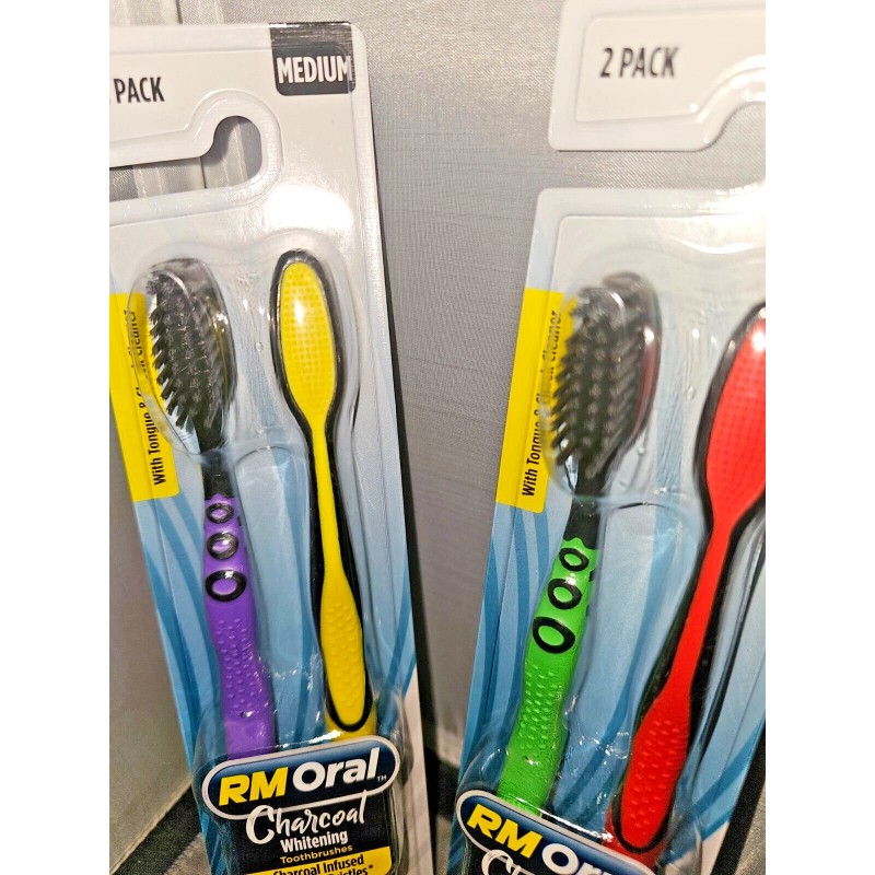 RM Oral Charcoal Whitening Medium Bristle Brushes 2 Packs of 2ct (NEW)