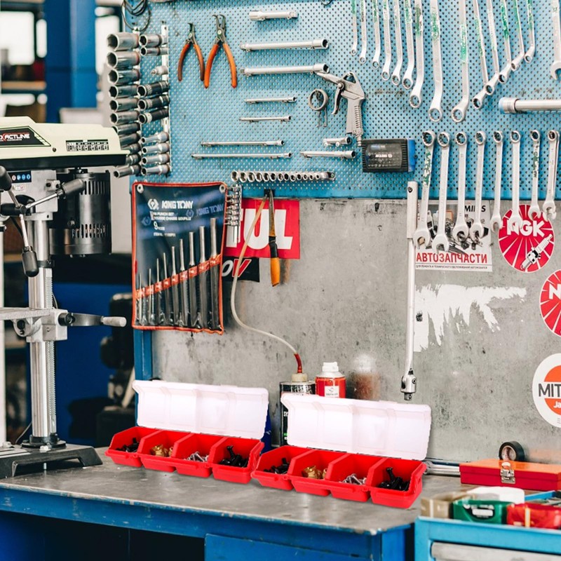 RMERVE Dedicated To Creating a Beautiful Life< br >< br > Character:< br > Perfect for tidy workspaces, the divider-equipped storage box makes an ideal gift. Stylish in red, these bins for nails and screws add both organization and aesthetic appeal to your workspace.< br >< br > Spec:< br > Material: PP plastic< br > Color: Red< br > Size: As shown on the home page< br >< br > Package includes:< br > 4 x Screw storage organizers< br >< br > Notes:< br > Please allow for minor errors, due to manual measurement.< br >