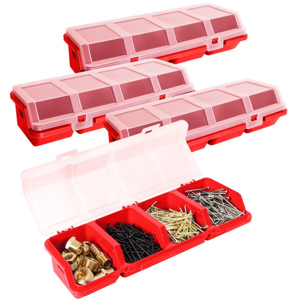 • 【Sufficient quantity】 The package contains 4 red screw storage boxes. With this storage box, you can sort and organize small hardware parts such as drill bits, nuts and bolts. It can also store craft accessories such as beads and nails.