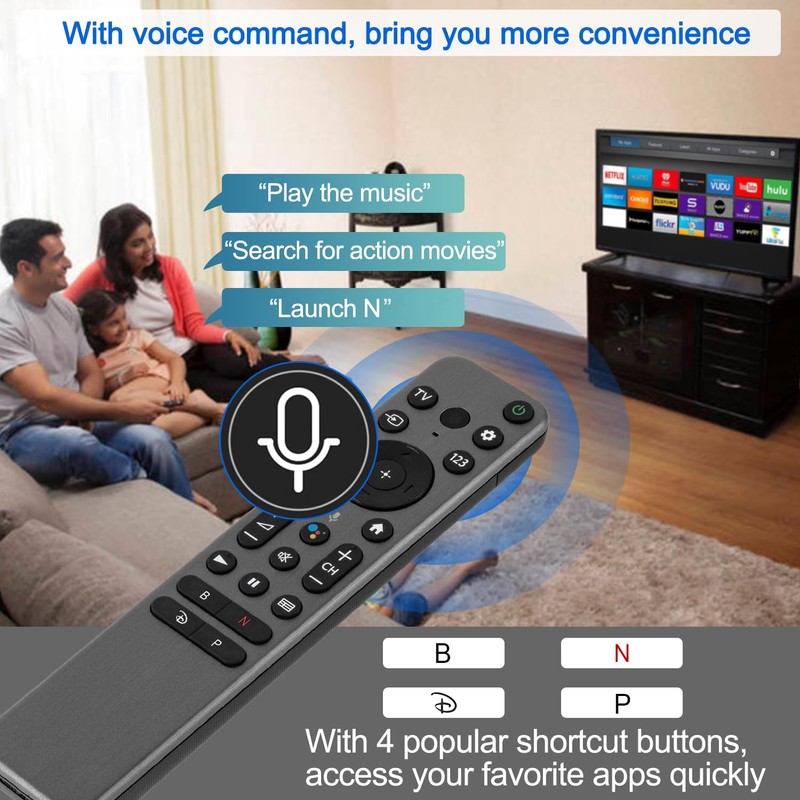 • With intelligent voice function and upgraded chip, all operations can be controlled by voice and all the programs and videos you want to watch can be called up in 0.2 seconds! With 4 shortcut buttons, which helps you quickly access to your favorite channel. Enjoy the quick control of your TV.