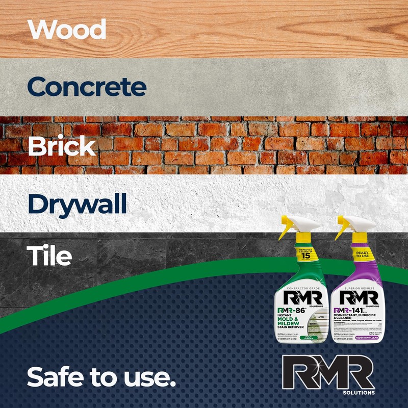 - TWO FAST-ACTING FORMULAS: The ultimate mold prevention kit, our bundle includes 1 spray bottle of RMR-86 and 1 spray bottle of RMR-141 RTU to kill mold and mildew instantly while lifting difficult stains that are left behind