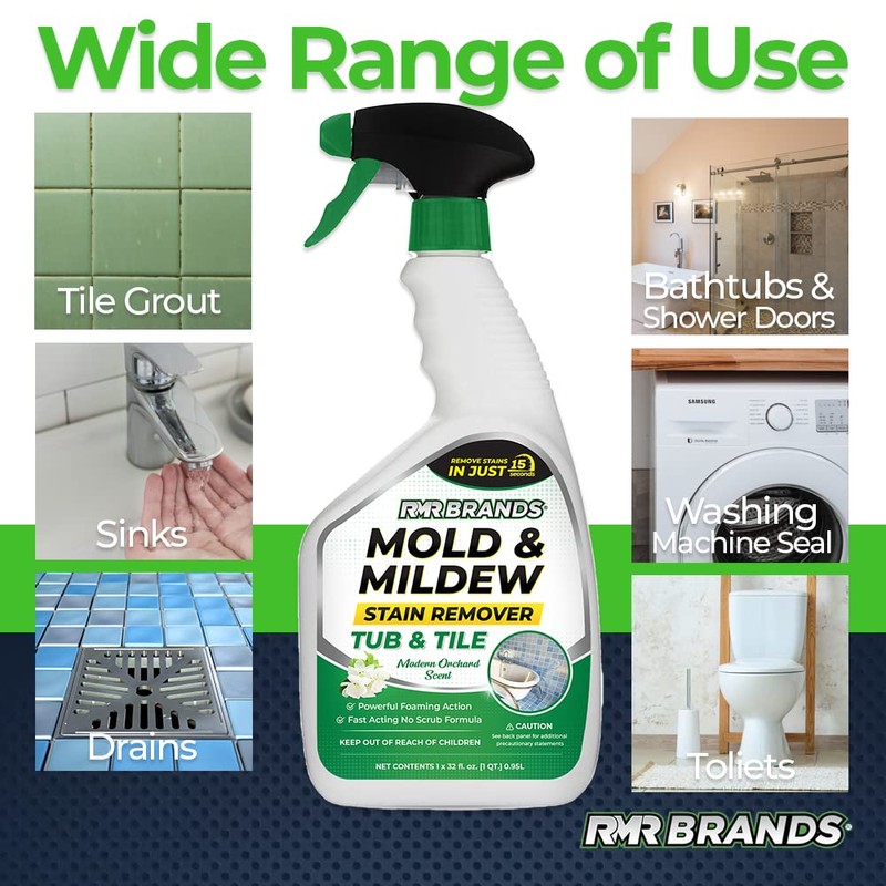 At RMR, we create powerful solutions to everyday problems. Our industrial-strength mold and mildew stain removal products work well anywhere from the office to your home, removing stubborn stains from your tub, shower, and tile and leaving behind a crisp, clean, modern orchard scent. For quality products and great value, try RMR Tub and Tile Cleaner, the best mold and mildew stain removal product on the market.