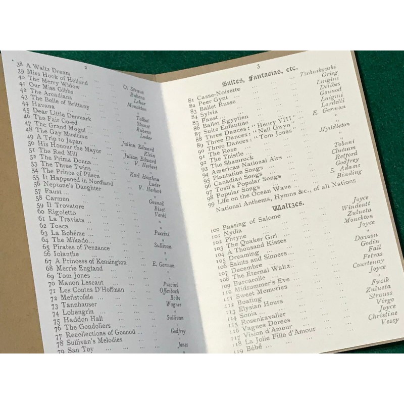 THESE BOOKLETS WERE GIVEN TO FIRST CLASS PASSENGERS SO THAT THEY COULD CALL OUT NUMBERS OR NAMES OF SONGS.
