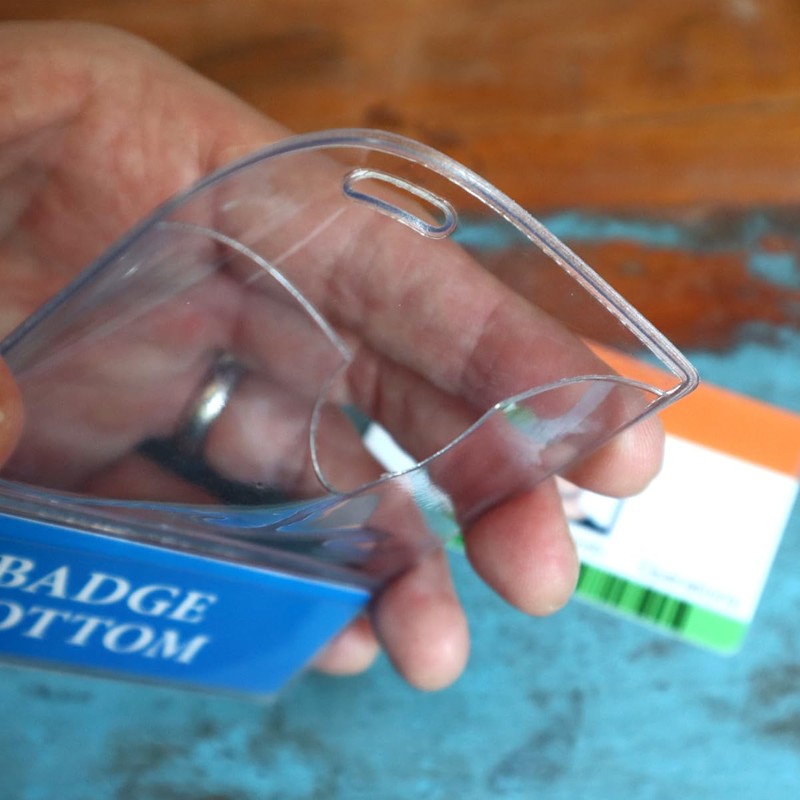 - DOUBLE SIDED PRINT - CRYSTAL CLEAR SLEEVE - EASY BADGING AND SCANNING - No Worries if Your Card Flips Around - Your Badge and Role Stay Visible at All Times - Flexible, Sturdy and Tear Resistant Plastic Card Protector for Long Lasting Use - Easy to Wipe Clean