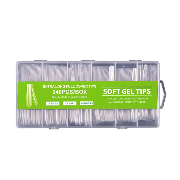 Rneracle Explosive 240 PCS Home DIY Nail Kit - Coffin False Nails, Press Ons, Fake Nails, Nail Tips, French Press On Nails - Transform Your Look Instantly (Extra Long - Coffin)