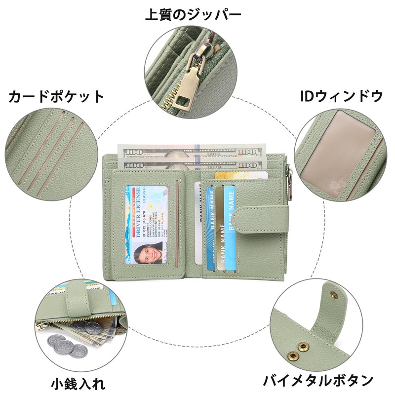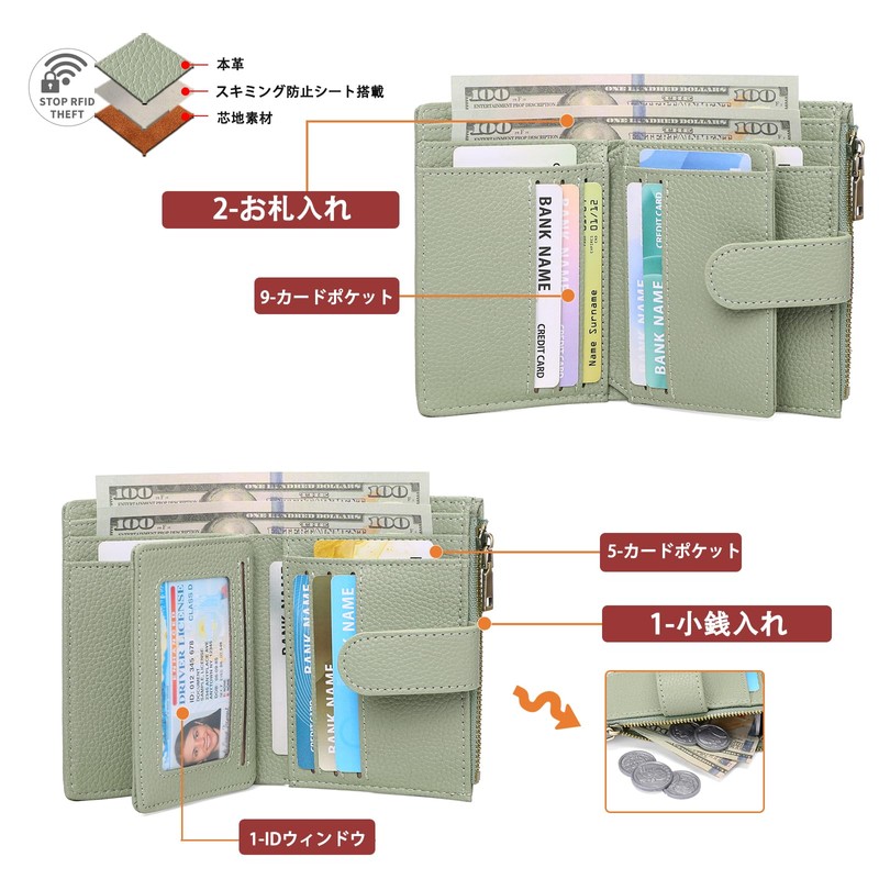 RNIEGA Women's Wallet, Large Capacity, Genuine Leather, Lightweight, Folding Wallet, Coin Purse, Card Case, Compact, RFID & Skimming Prevention Wallet, green