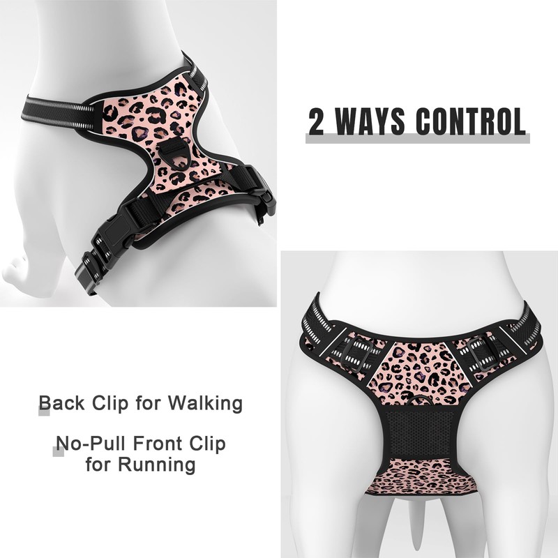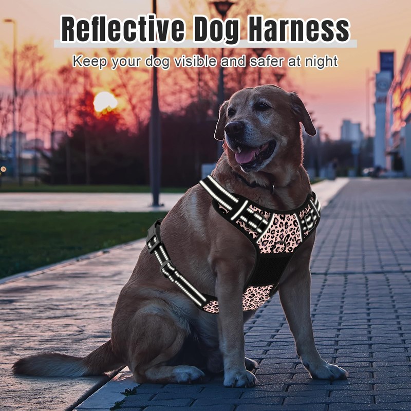 Rnivvi Dog Harness, Cute Leopard No Pull Dog Harness Medium Sized, Reflective Puppy Harness Adjustable Soft Padded Dog Vest for Medium Dogs, Pet Harness with Easy Control Handle for Walking, Pink