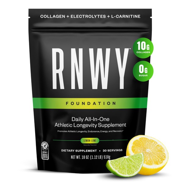 RNWY Foundation 10g Collagen Peptides + Hydration Powder, Daily Joint Support with Electrolytes, Lemon Lime, Sugar Free, 30 Servings