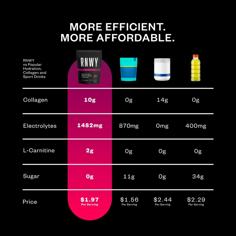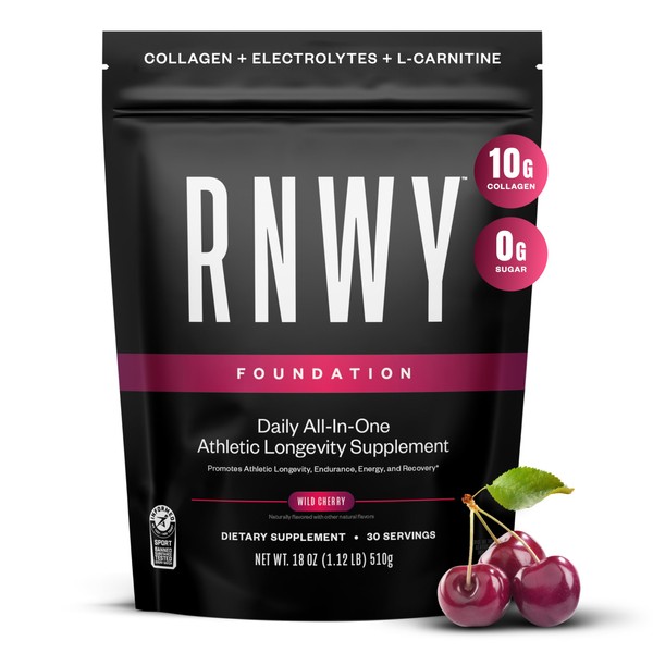 RNWY RNWY Wild Cherry Foundation Collagen Powder, Daily Joint Support with Electrolytes and Multivitamin, 10g Collagen Peptides, Sugar Free, 30 Servings