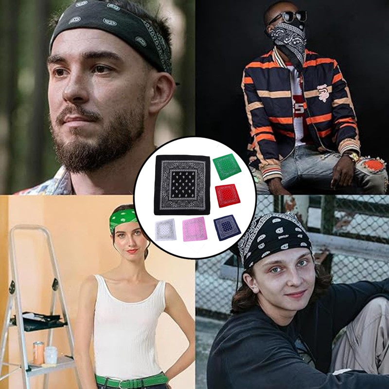 - FASHION DESIGN Featuring a stylish western paisley pattern, each bandana presents itself in a fashionable and retro look. The 6 different colours allow you to choose your bandana headscarf according to your preferences and combine it in many ways in your wardrobe.