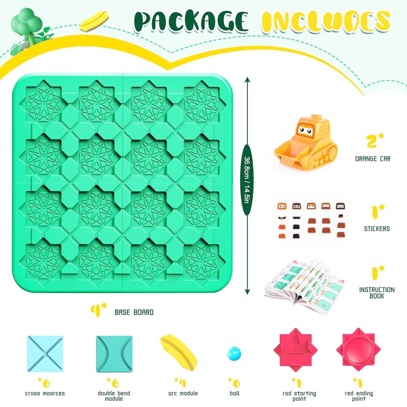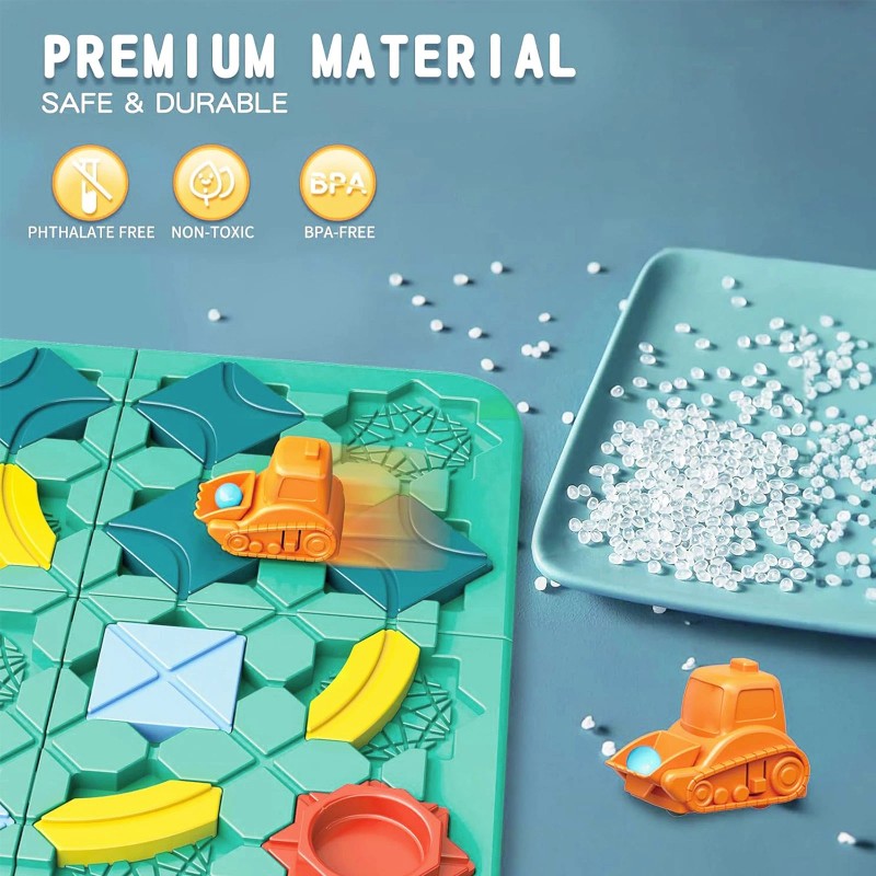 These are puzzles that challenge you to connect the path from start to goal using different track pieces, but the excitement doesn't stop there! Once you've solved the puzzles, to use the pull-back car, wind it up, place the car at the starting point and secure it in place. Next, it's time to put the ball on the pull-back car, and then give it a gentle push to start it off, and watch it race towards the finish line. Whether you choose to sit back and watch the action unfold or get in on the fun by cheering the car on, the pull-back car is sure to add a whole new level of excitement to this already engaging activitBoard games for age 4-6 kids