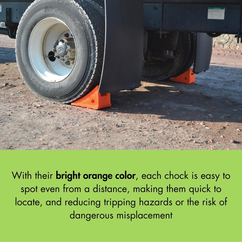 - Curved surface allows chock to be placed flush to wheel