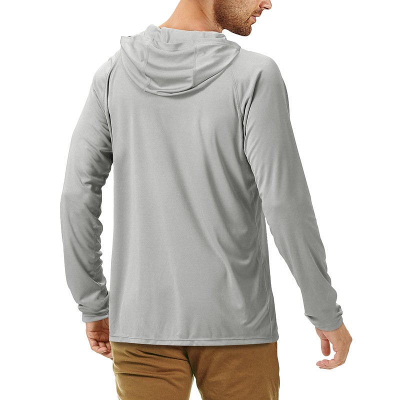 Roadbox Men's UPF 50+ UV Sun Protection Shirts, Quick Dry Long Sleeve Fishing Hoodie, Rash Guards for Swimming Hiking Running Grey