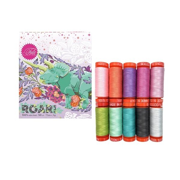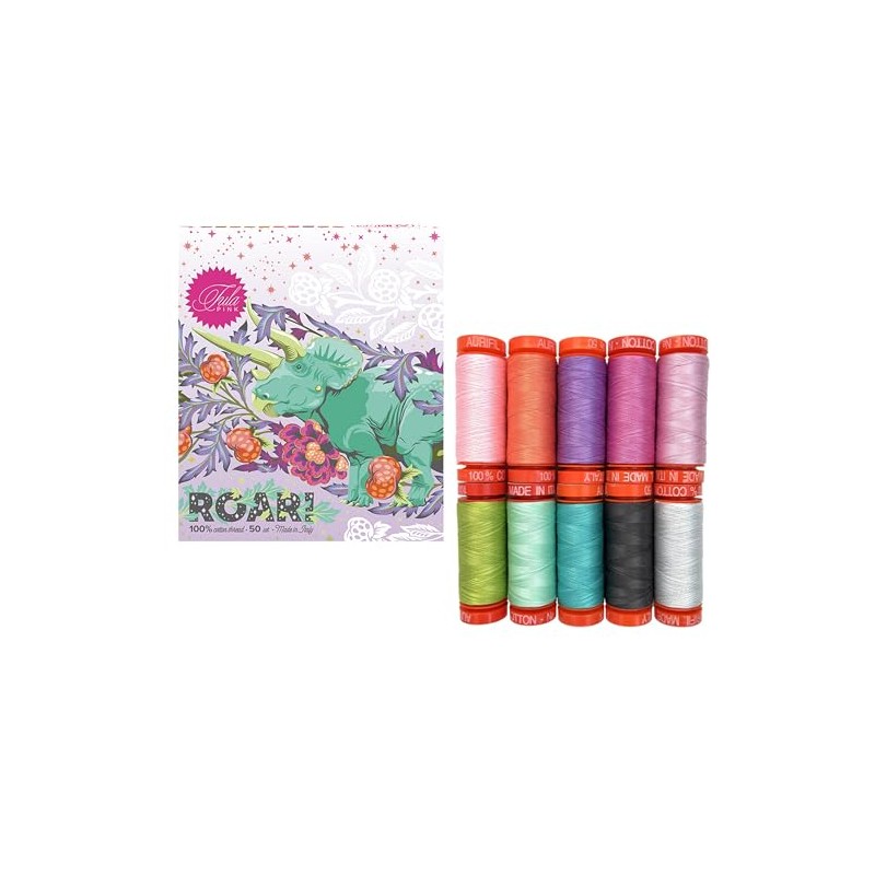 Roar Aurifil Thread 50 wt Cotton 10 Small spools by Tula Pink TP50RC10, assorted