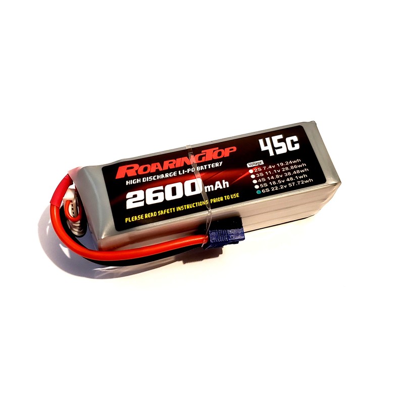 RoaringTop LiPo Battery Pack 45C 2600mAh 6S 22.2V with EC3 Plug for RC Car Boat Truck Heli Airplane