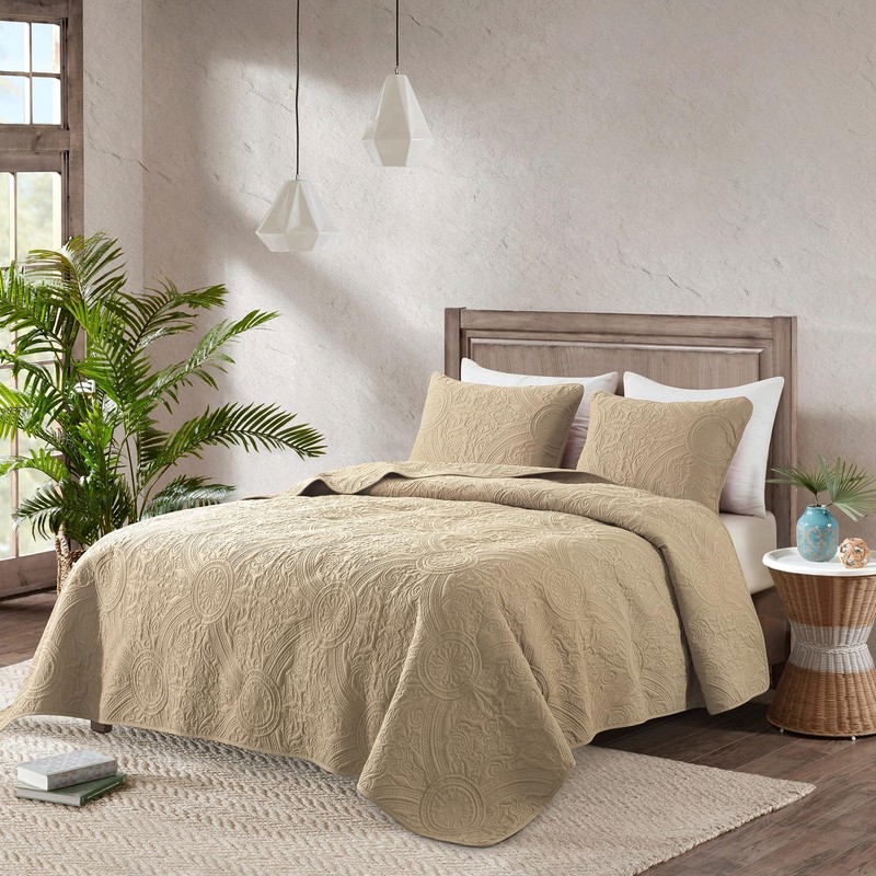 ROARINGWILD Boho California Oversized Cal King Size Quilt Bedding Sets with Pillow Shams, Beige Lightweight Soft Bedspread Coverlet, 3 Pieces, 118x106 inches