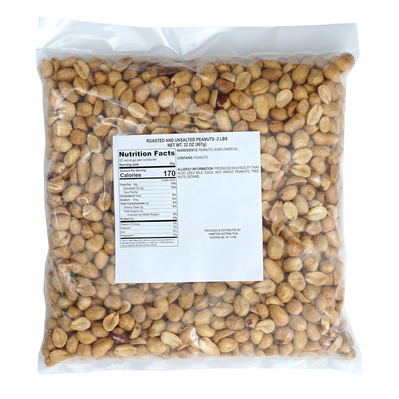 - 2 POUND BULK BAG: Enjoy this freshly packaged 2 pound bulk bag of roasted and unsalted peanuts.