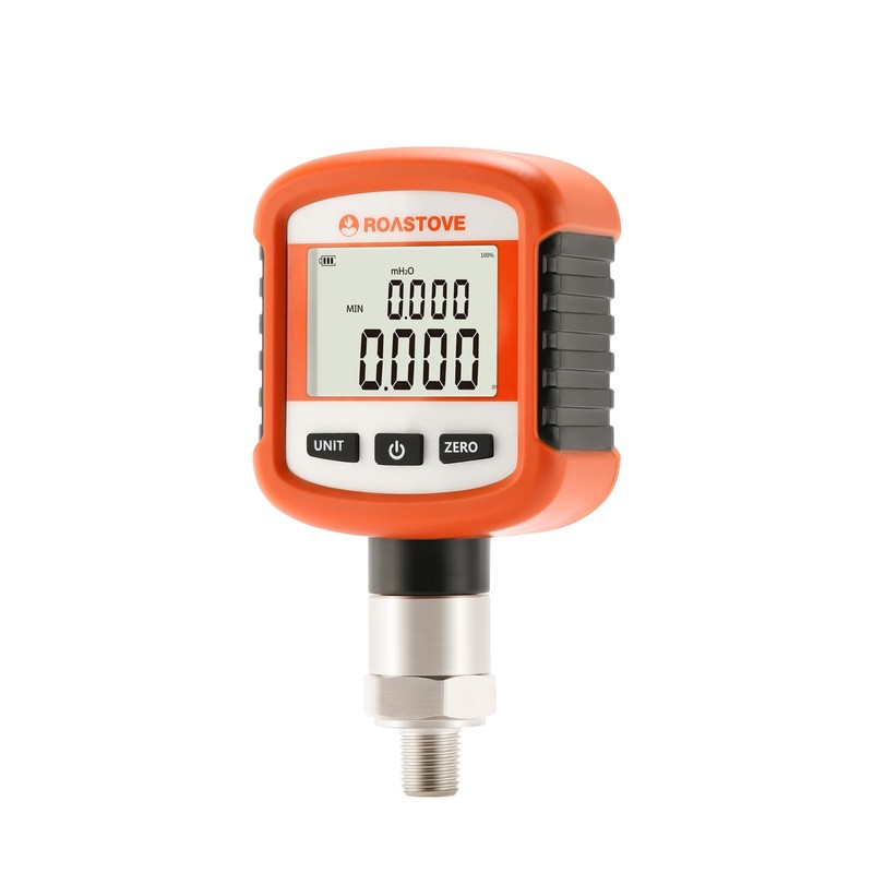 Roastove Digital Industrial Pressure Gauge 0-5000psi, 0.2% FS, 1/4''NPT Lower, Stainless Steel Connection, Battery Powered, with LED Light, Blue Tooth, Phone Connect
