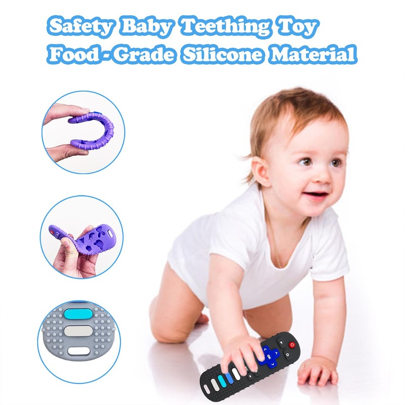 - Helps Relieve Pain From Teething - Comes with 1PC TV remote shaped chew toy only. The bumps of various shapes can better relieve the discomfort of the baby's teething gums, making Robbear one of your must have baby items newborn essentials. Excellent baby shower gifts for girls and boys.