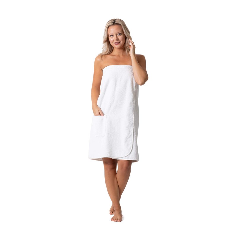 Robe Direct Women’s Terry Cloth Spa and Bath Towel Wrap with Adjustable Closure & Elastic Top (White, Large/One Size)