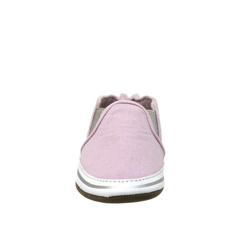 Robeez Baby Girls and Unisex Soft Soles Slip-Resistant Crib Shoes Slippers Moccasins for Infant and Toddler - Leah Light Pink Canvas, 12-18 Months